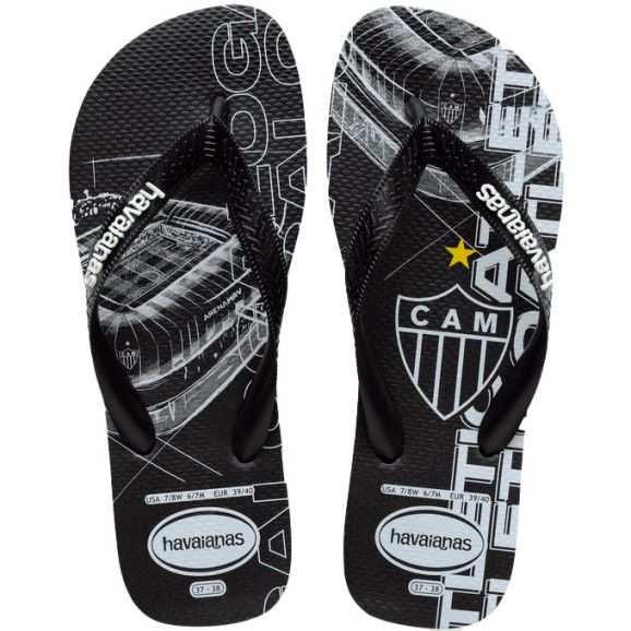 Para os alucinados por futebol a Havaianas oferece um chinelo no melhor estilo de campeão para os seus pés! Aqui o estilo do chinelo conta com o formato consagrado da marca, que oferece conforto, resistência e leveza na caminhada. O golaço vai para o Atlético Mineiro que ganha em cada pé do chinelo uma parte do desenho do seu brasão, onde o par combina também as cores do clube e traz sorte para o seu time do coração.